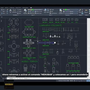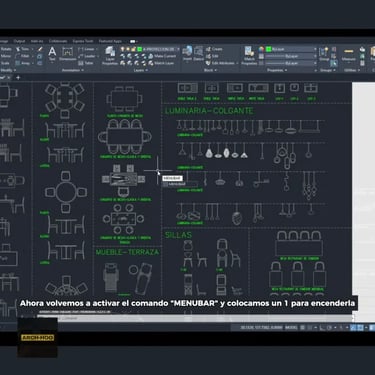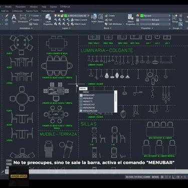 Lo primero que tenemos que hacer es asegurarnos de tener activa la barra de menú superior. Si no la ves escribe el comando "MENUBAR" y coloca el valor "0" para apagarla, activa nuevament el comando "MENUBAR" y pon valor 1 y Enter para mostrarla.