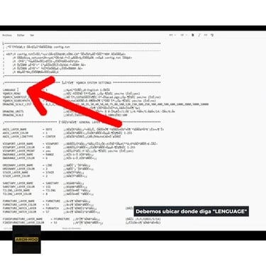 En el bloc de notas, en la sección de "YQARCH SYSTEM SETTINGS", buscamos la opción de "LANGUAGUE". A la derecha del texto nos menciona que "0" Equivale a Inglés y "1" equivale a Chino.