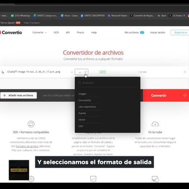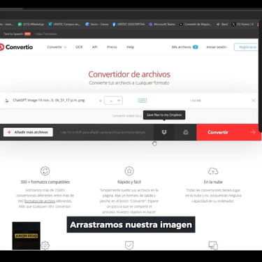 Convertirla en DXF: Una vez nos dé un resultado que nos agrade, descargamos la imagen y vamos a la página de nuestros amigos: https://convertio.co/es/ ahí subimos la imagen y la convertimos en un archivo ".DXF". Podemos usar cualquier convertidor, el objetivo es pasarla a un archivo .DXF.