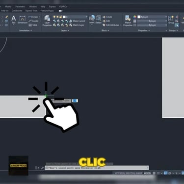 Paso 2.- Una vez elegido el estilo, hacemos un primer clic en un extremo del vano o hueco de la puerta, y un segundo clic al otro extremo del hueco, marcando todo el ancho de la puerta, después, un primer clic en el inicio del ancho del muro y otro clic en donde termina, marcando ahora todo el ancho del muro. Automáticamente se crea la puerta que al igual la podremos orientar con el mouse y colocando con la tecla "ESC" y listo, tendremos nuestra puerta. Lo mejor de todo es que crea bloques que nosotros podremos editar a nuestro gusto.